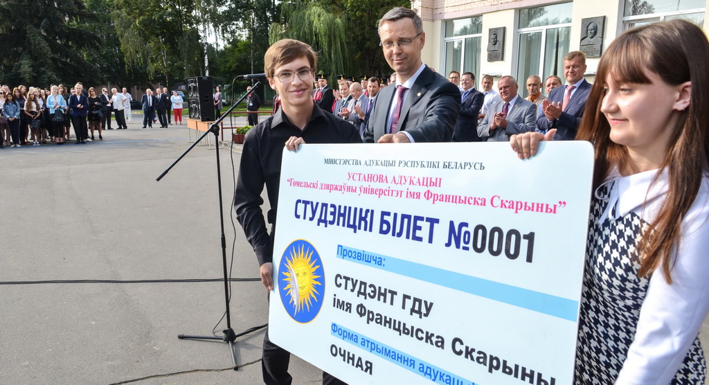 − С сегодняшнего дня перед вами открываются двери в безграничный мир возможностей. Своим трудом вы заслужили право стать студентами одного из лучших высших учебных заведений страны – Гомельского государственного университета имени Франциска Скорины. Здесь вы раскроетесь как личности, твердо определитесь со своими жизненными целями, ощутите гордость от первых серьезных успехов и побед, − сказал заместитель премьер-министра Беларуси Игорь Ляшенко.