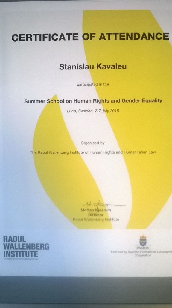 Студенты юридического факультета ГГУ имени Ф.Скорины Тенюта Елизавета, Радионов Константин и Ковалев Станислав приняли участие в работе Летней школы по правам человека и гендерному равенству с 1 по 7 июля 2018 года, организованной Институтом Рауля Валленберга в городе Лунд (Швеция). Институт прав человека и гуманитарного права имени Рауля Валленберга – академический институт, основанный в 1984 году. Деятельность Института направлена на поощрение понимания и уважения прав человека и международного гуманитарного права. Цель летних курсов состояла в том, чтобы сформировать у участников общее представление о международном праве в области прав человека и гендерном равенстве и проиллюстрировать некоторые аспекты, касающиеся поощрения и защиты прав человека. К ведению занятий были привлечены ведущие преподаватели университетов Республики Беларусь, а также приглашенные профессора - эксперты в области прав человека, работающие в Институте Рауля Валленберга. В ходе Летней школы рассматривались гражданские и политические права, экономические, социальные и культурные права, и их взаимодействие друг с другом. Курс Летней школы состоял из семинаров и презентаций, на которых данная область международного права была рассмотрена с теоретической и практической точки зрения. В ходе курса были использованы тематические исследования и интерактивное обучение. Студенты также проанализировали соответствующую прецедентную практику, работая в группах. За одну только неделю участники Летней школы смогли ознакомиться с вопросами защиты политических, социально-экономических и культурных прав человека, защиты прав инвалидов, с конвенциями о правах ребенка и о ликвидации всех форм дискриминации в отношении женщин. В программе мероприятий предусматривалась возможность посещения таких городов, как Мальмё (Швеция) и Копенгаген (Дания). Занятия проводились на русском и английском языках. Участие в данном мероприятии позволило приобрести полезные знания и навыки, а также оставило яркие воспоминания от путешествия в удивительную страну Швецию.
