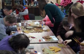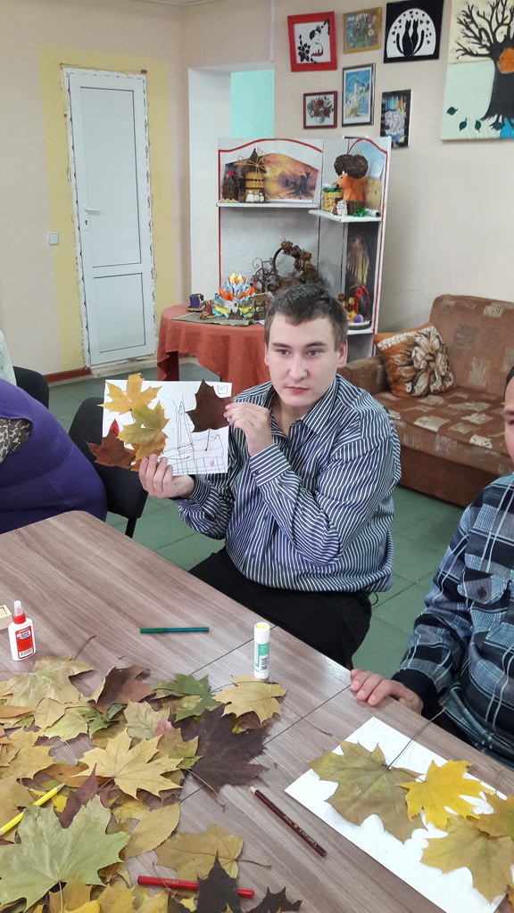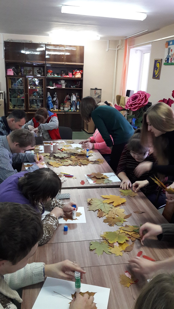 Волонтерами «Созвездия» подготовлено и проведено очередное творческое занятие с инвалидами. С огромным интересом и энтузиазмом они включаются в творческий процесс, поэтому волонтеры, готовясь к занятиям, ориентируются на выбор заданий, связанных с созданием каких-либо аппликаций, открыток, авторских работ. На прошедшем занятии все участники изготавливали аппликацию из осенних листьев на тему «Осень унылая – прекрасная пора».