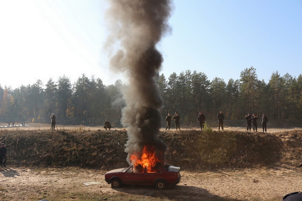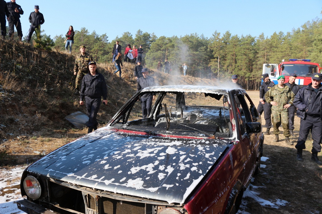 - Следующим этапом был подрыв легкового автомобиля. Организаторами сборов были разработаны две следственные ситуации. Одна из них – это террористический акт, когда предполагаемый преступник установил взрывное устройство на крышу автомобиля. В результате этого подрыва автомобиль воспламенился, и тут слаженно сработали сотрудники МЧС. Да, к счастью, такого в жизни нам ещё видеть не доводилось. После тушения пожара мы произвели осмотр. Из комментариев специалистов я узнала все признаки и особенности направленного взрыва транспортного средства.