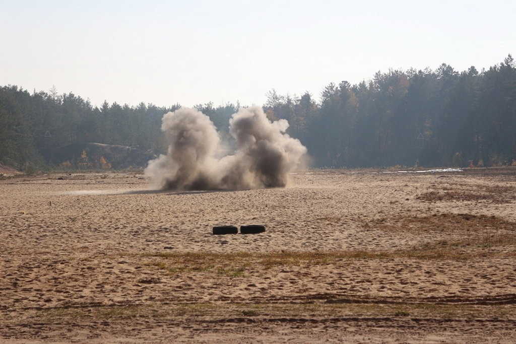 - После лекции по приказу мы отошли на безопасное расстояние, и сапёры начали своё дело. Они последовательно закладывали тротиловые шашки различного веса и производили взрывы. Сначала прогремел взрыв 200 грамм тротила, затем 400, 600, 800 и, наконец, вес заряда составил 1 килограмм. Мы обратили внимание, что с увеличением веса взрывчатки, усиливался звуковой эффект, и всё большие клубы чёрного дыма поднимались в воздух. Кстати, после каждого взрыва запускался квадрокоптер, с помощью которого производилась видеосъемка всех изменений на поверхности земли, говоря профессионально, фиксировались следы взрыва.