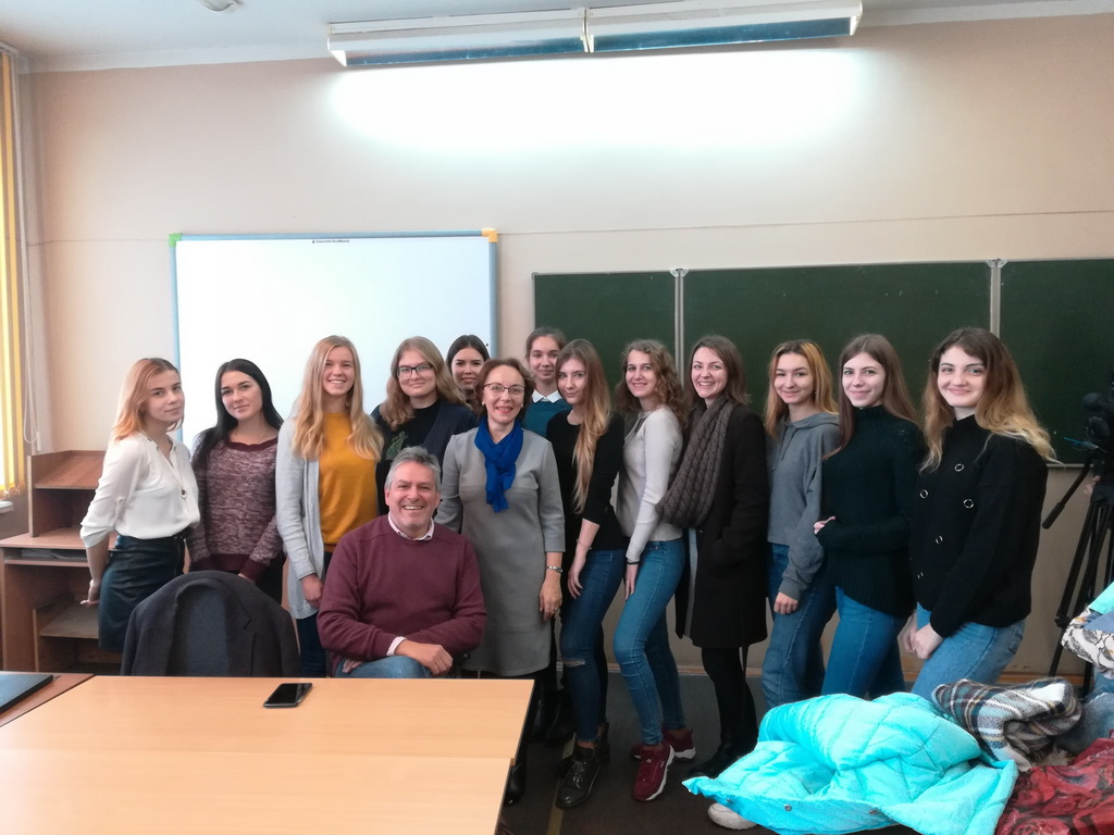 5 ноября факультет иностранных языков радушно встретил в стенах нашего вуза известного английского путешественника, человека, который не  просто любит бывать в нашей стране, но и составил уже 3 путеводителя по Синеокой для англоязычных туристов Найджела Робертса. Среди гостей факультета было приятно увидеть и учащихся гимназии № 14 г. Гомеля, которые совсем недавно стали участниками образовательного проекта «ВУЗ глазами абитуриента» и по праву считаются частью дружной семьи по имени ИН.ЯЗ.