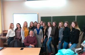 Найджел Робертс презентовал свой путеводитель по Республике Беларусь, рассказал ребятам об истории знакомства с нашей страной. Участники оживленной дискуссии задали многочисленные вопросы, которые затрагивали различные аспекты нашей жизни: путешествия, история Беларуси, роль монархии в Соединенном Королевстве, любимые белорусские блюда нашего гостя и т.д. Было очень грустно расставаться с таким прекрасным собеседником, но, благодаря достигнутым договоренностям, ожидается развитие сотрудничества между факультетом иностранных языков и Найджелом Робертсом в области организации и проведения лекций и семинаров по литературе для наших студентов. С нетерпением ждем новых встреч!