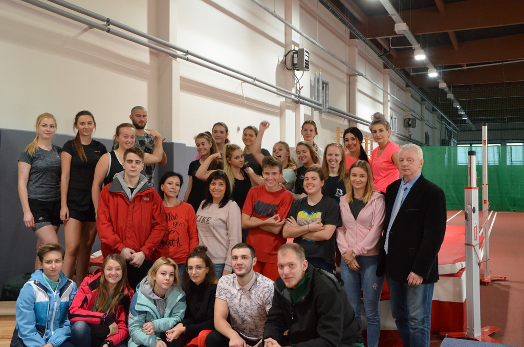 На следующий день мы посетили практическое занятие с польскими студентами на тему «Методика прыжка в высоту способом «фосбери-флоп» в одном из специальных залов университета. Сначала профессор польского вуза провел интересную викторину для польских и наших студентов на олимпийскую тематику. Благодаря эрудиции Егора Логоша наша команда одержала победу.