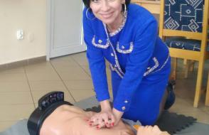 Второй «польский» день начался с практического занятия по дисциплине «Первая медицинская помощь», которая по тематике схожа с нашей учебной дисциплиной «Охрана безопасности жизнедеятельности». Занятие, активно вовлекая нас в его процесс, проводила преподаватель кафедры спорта и укрепления здоровья. Проблем в понимании языка не было благодаря знаниям, полученным по этому предмету в нашем вузе. Полтора часа пролетели незаметно. Все стали участниками тестирования на наличие в организме алкоголя и наркотических веществ, пройдя по намеченной траектории в специальных очках. Далее каждый попробовал оказать первую неотложную помощь, делая искусственное дыхание и непрямой массаж сердца на современных манекенах-тренажерах. ГГУ