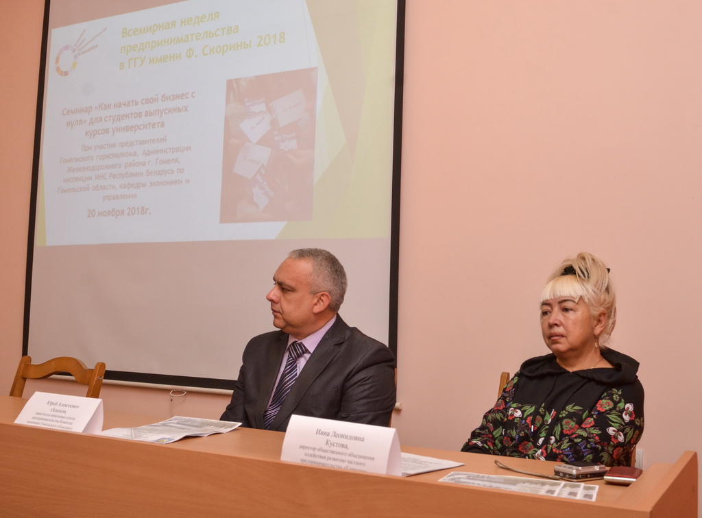 Превратить идею в деньги, освоить технологии прибыльного дела, поверить в себя и воплотить в жизнь свои мечты – все эти возможности дает начинающим бизнесменам Всемирная неделя предпринимательства, которая проводится в Беларуси с 2011 года. По традиции, международную акцию поддержал Гомельский госуниверситет имени Ф. Скорины - ведущий региональный поставщик кадров для белорусской экономики. Открытие проекта состоялось здесь 19 ноября.