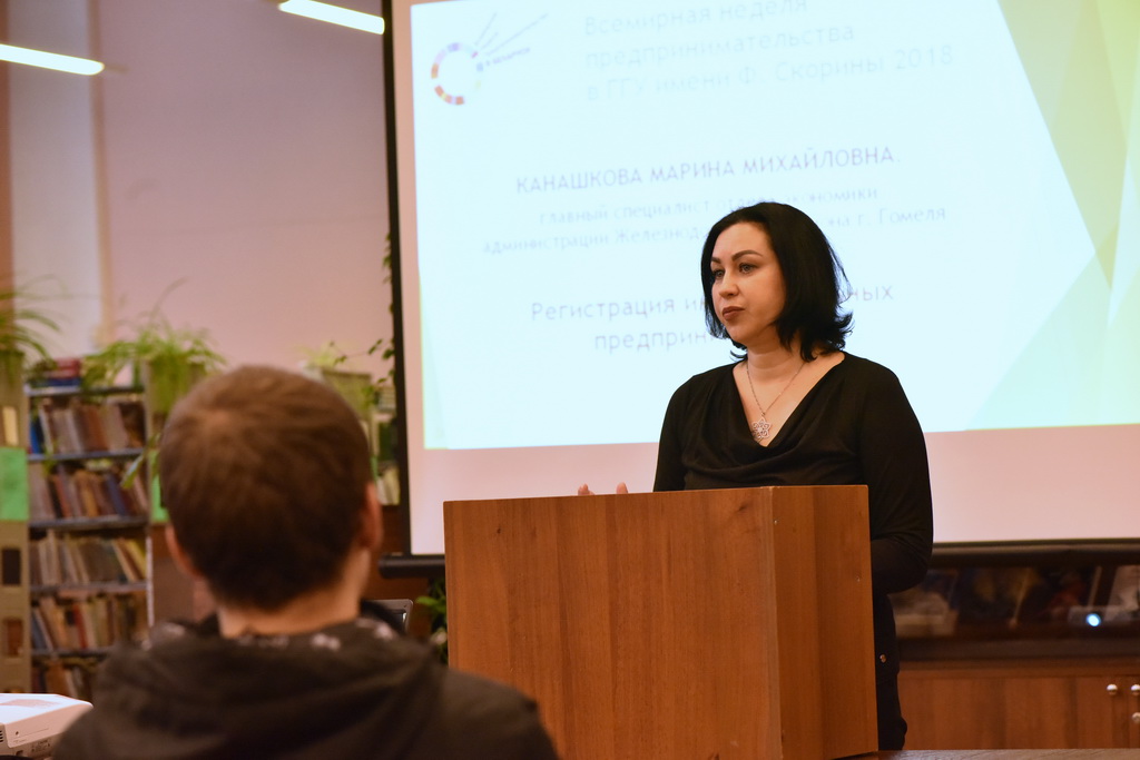 Мероприятие стало ярким событием Всемирной недели предпринимательства, которая проходит в вузе с 19 по 23 ноября. В качестве экспертов на нем выступили начальник отдела предпринимательства управления экономики Гомельского горисполкома Андрей Кравцов, главный специалист отдела экономики администрации Железнодорожного района Марина Канашкова, заместитель начальника инспекции Министерства по налогам и сборам Беларуси по Гомельской области Дмитрий Дайнеко, а также доцент кафедры экономики и управления ГГУ Ольга Арашкевич.