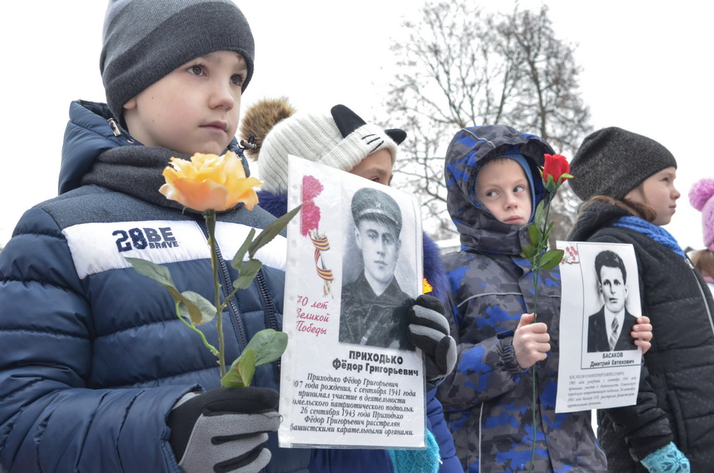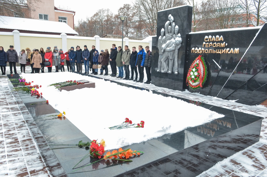 У братской могилы героев-подпольщиков и партизан с самого утра собрались преподаватели, сотрудники, студенты юридического и исторического факультетов нашего университета, учащиеся гимназии №56 г. Гомеля имени А.А. Вишневского и жители города. Среди присутствующих были дети погибших героев-подпольщиков Ирина Дмитриевна Басакова, Елена Евгеньевна Хомич, Евгения Фёдоровна Приходько и Ростислав Романович Тимофеенко, которые поделились воспоминаниями о своем военном детстве, пожелали всем мирного неба над головой.