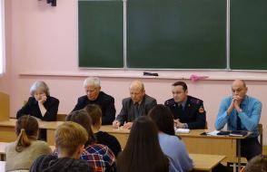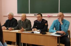 Ветераны рассказали студентам, как пришли на службу в милицию, как в своё время работали в единой связке следователи, оперативники, эксперты, поделились своим личным отношением к службе в правоохранительных органах, поведали о том, каких знаний и самоотдачи потребовала от них эта работа, объяснили, какими личностными качествами должны обладать люди, желающие связать свою трудовую деятельность с работой в правоохранительной системе.