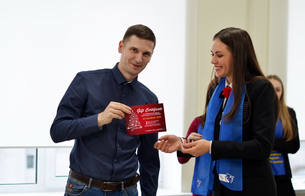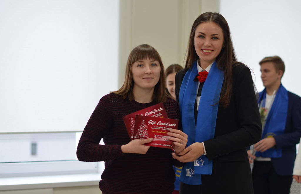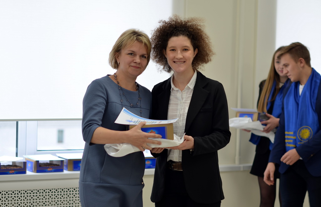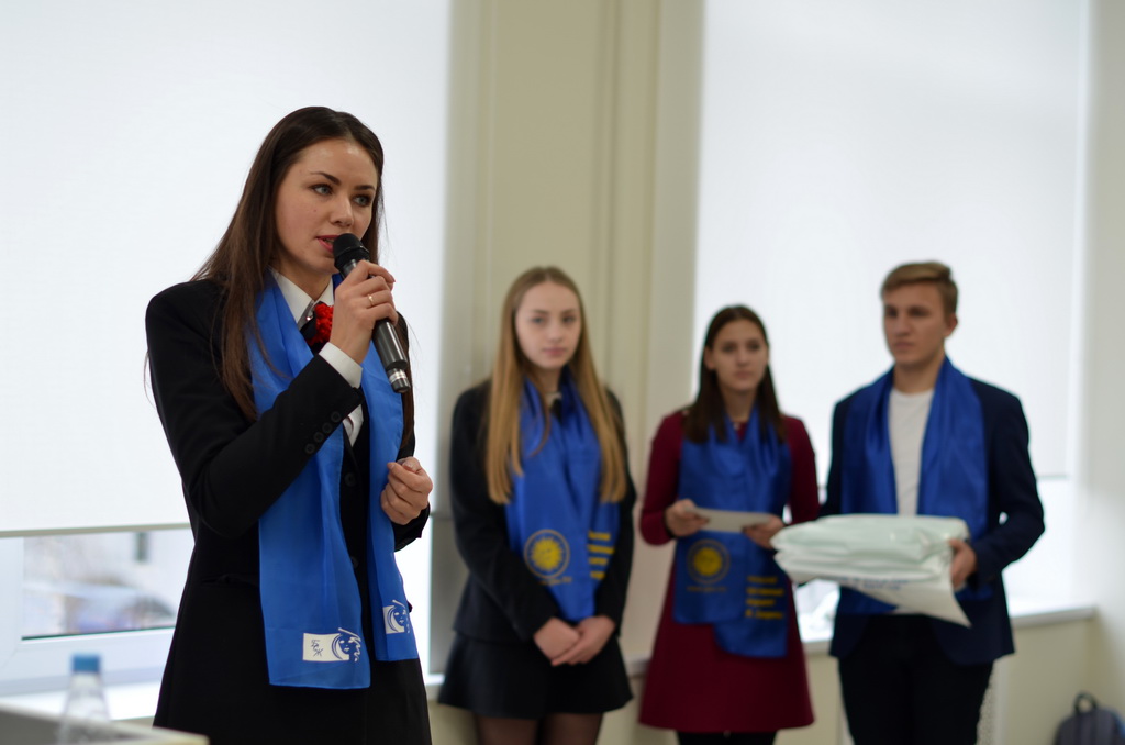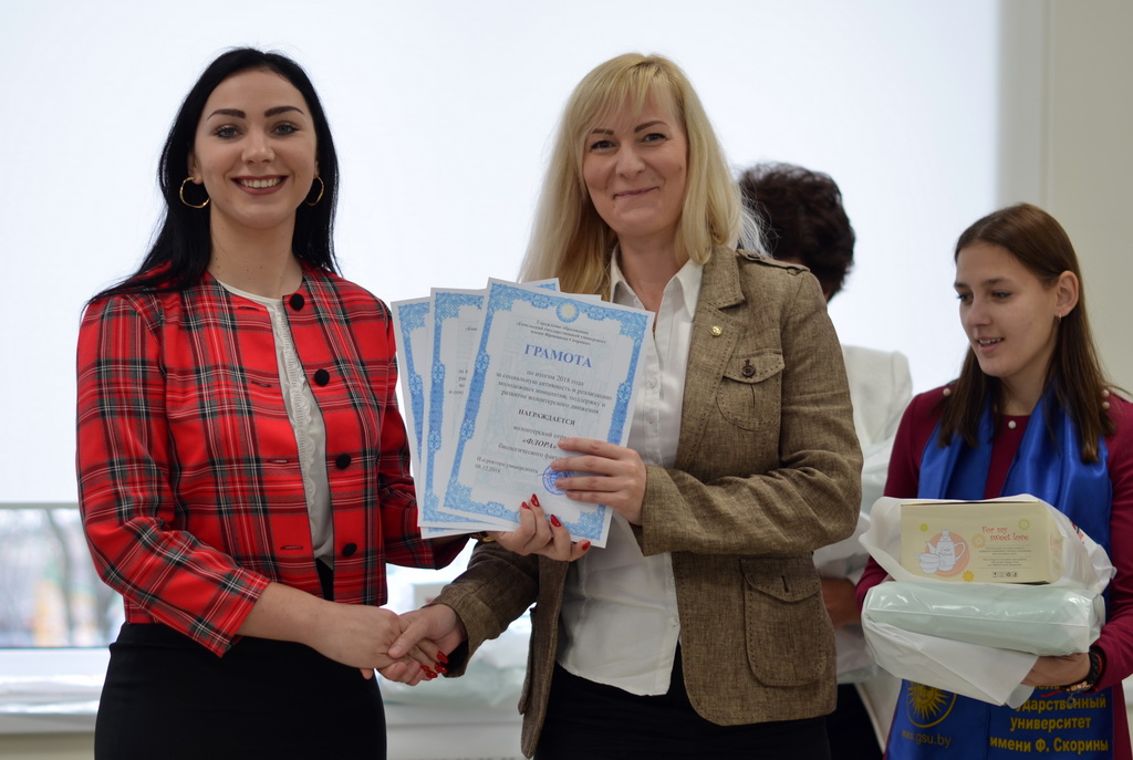 Переходящий кубок руководителям лучшего волонтерского отряда уходящего года, которым был признан отряд «Созвездие», был вручен победительницей республиканского конкурса «Миссис Беларусь-2014» Юлией Перегудовой.