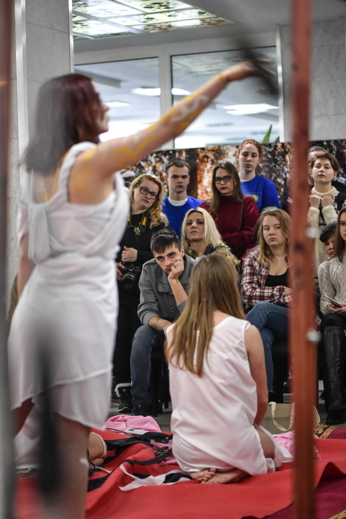 Затем желающие приняли участие в мастер-классе «Создание фотообраза», который предложила Анастасия Золотая-Концевенко. Анастасия на глазах у зрителей создавала по желанию участника необычные образы, а затем делала фотопортреты.