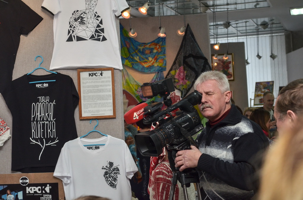 В рамках работы выставки Денис Медведев показал, как можно использовать белорусскую символику в современной молодежной одежде. А ребята из магазина «Кроки» представили на арт-событие футболки с оригинальными принтами.