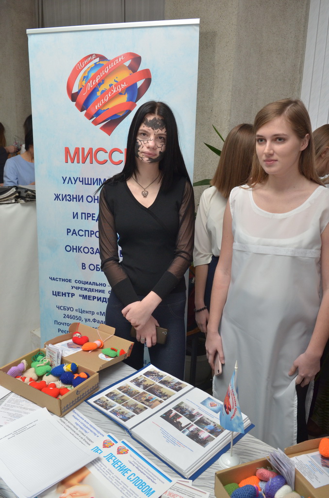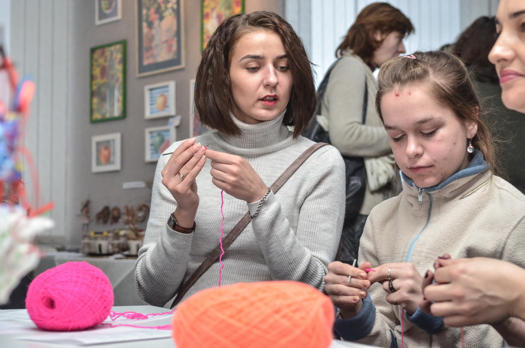 Следующими в программе стали мастер-класс «Свяжем вместе» Ольги Очеретной, которая вот уже несколько лет является сотрудником Центра помощи онкопациентам и их близким «Меридиан надежды». Все, кто принял участие в мастер-классе Ольги, создавали своими руками милый сувенир «Человек-сердце».