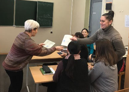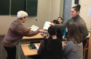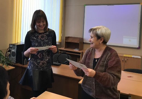 Доцент кафедры последипломного образования МГЛУ Валентина Бричикова в торжественной и одновременно неформальной обстановке вручила преподавателям факультета иностранных языков свидетельства о повышении квалификации на факультете повышения квалификации и переподготовки кадров ИПК и ПК МГЛУ.