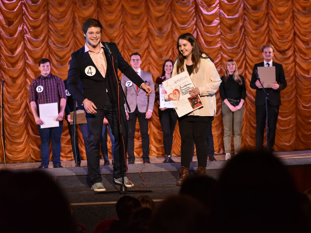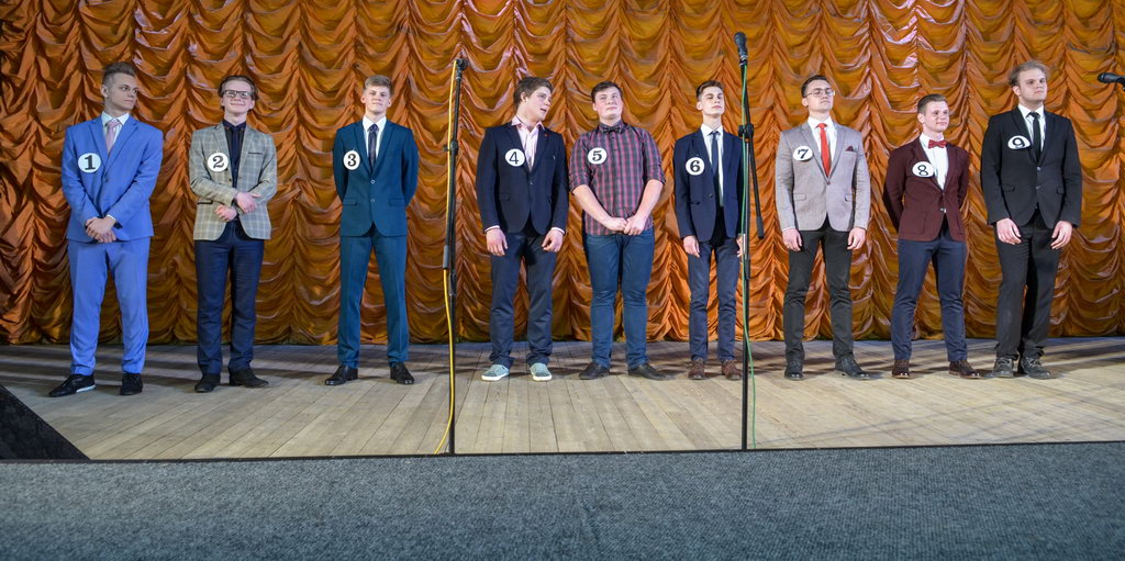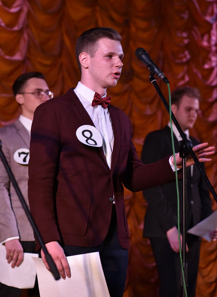 За титул Мистера боролись девять представителей разных факультетов. Победителем же стал участник под номером 2. Это студент факультета математики и технологий программирования Максим Тимошенко.