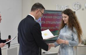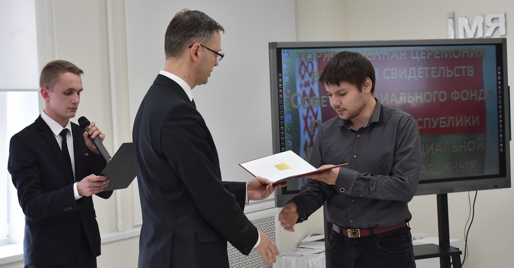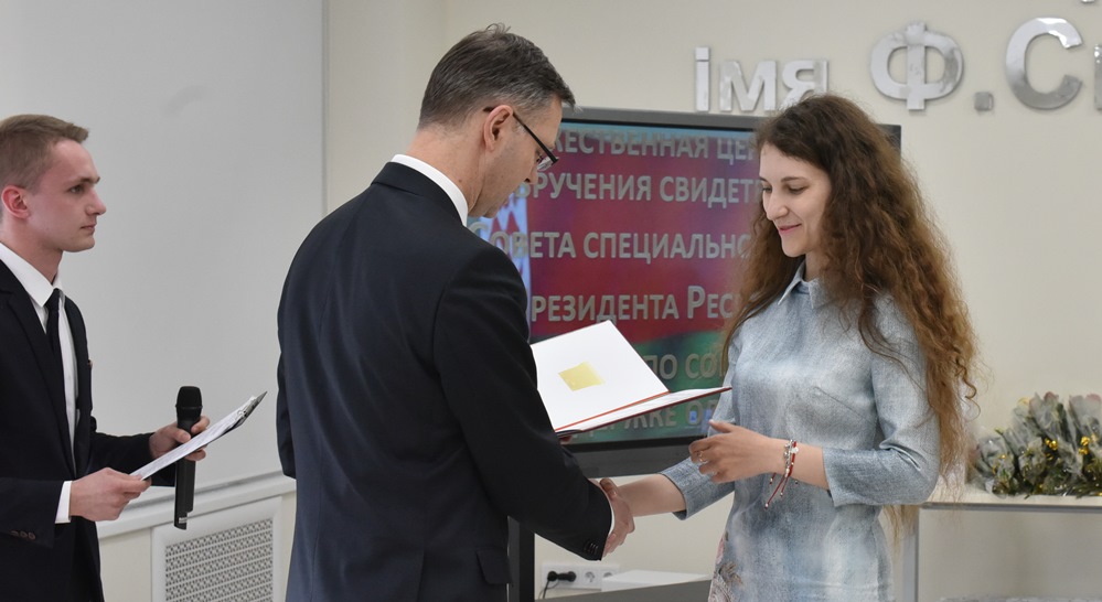 Праздник – это всегда поздравления, цветы и подарки. Торжественное заседание Совета университета продолжилось церемонией награждения одаренных учащихся и студентов, которые получили свидетельства Совета специального фонда Президента Республики Беларусь по социальной поддержке одаренной молодежи, а также чествованием лучших представителей университетского коллектива.