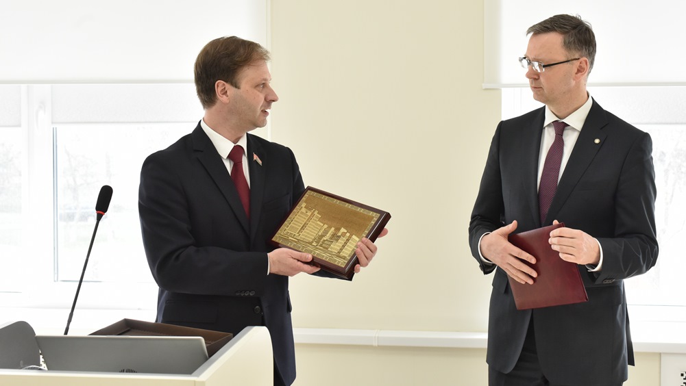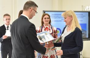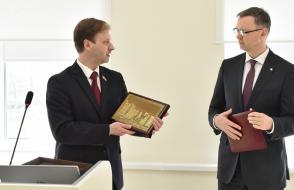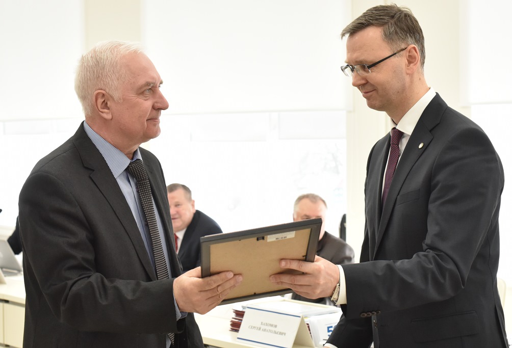 В завершение торжественного заседания Совета университета сувениры на память о празднике получили деканы всех 13 факультетов ГГУ имени Ф. Скорины.
