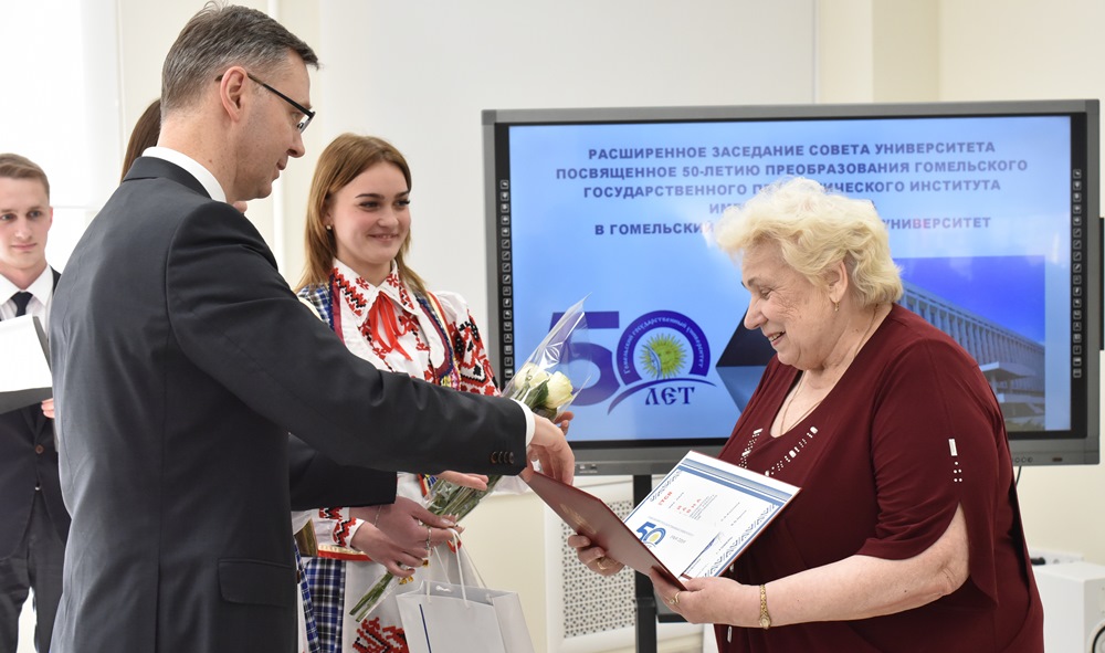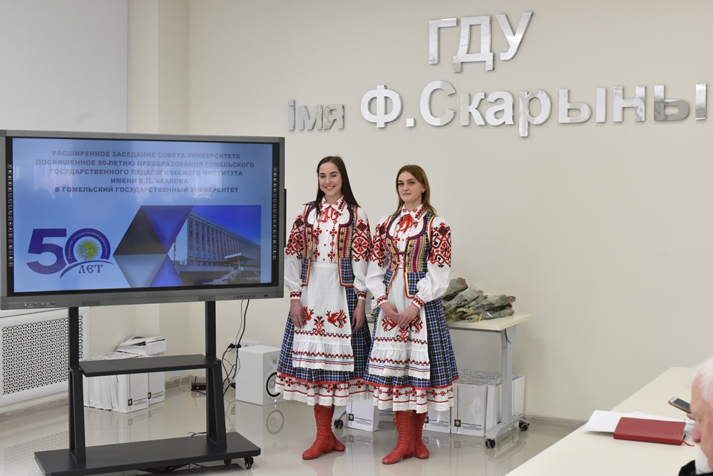 Ключевым событием праздника в честь 50-летия преобразования Гомельского педагогического института имени В.П. Чкалова в Гомельский государственный университет стало торжественное заседание Совета университета.