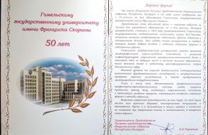 Почетной грамоты университета за многолетний добросовестный труд и в связи с юбилейными датами были удостоены сотрудники ГГУ имени Ф. Скорины: