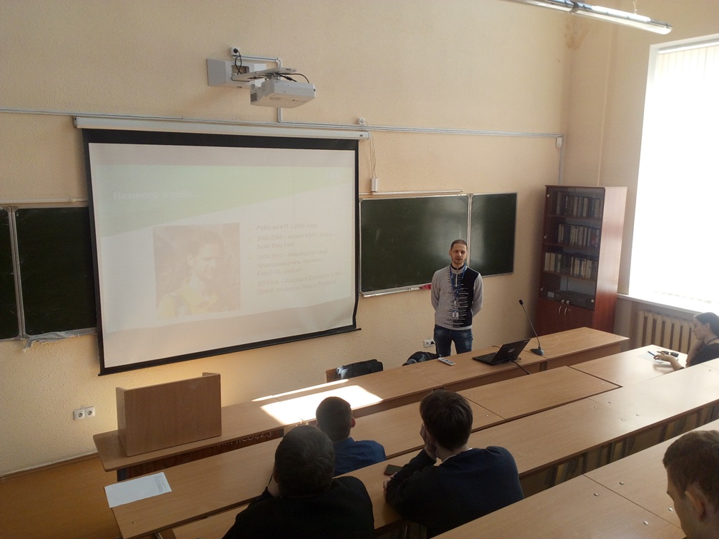 На данном семинаре были рассмотрены основные задачи, решаемые с помощью криптографии, криптографические преобразования и их достоинства, недостатки, основные уязвимости и методы борьбы с ними. Также были приведены примеры использования криптографических инструментов в информационных процессах (хранение паролей, шифрование канала связи, аутентификация пользователя), перечислены актуальные криптографические алгоритмы, без углубления в детали их реализации. На встрече присутствовал профессор кафедры алгебры и геометрии Монахов Виктор Степанович, который преподаёт студентам дисциплину «Основы защиты информации».