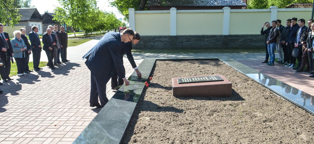 Перед началом конференции руководство нашего университета, представители общественных организаций, студенты возложили венки и цветы к памятнику героям-подпольщикам в Студенческом сквере. Память воинов, погибших в боях за Гомель в Великой Отечественной войне, присутствующие почтили Минутой молчания.