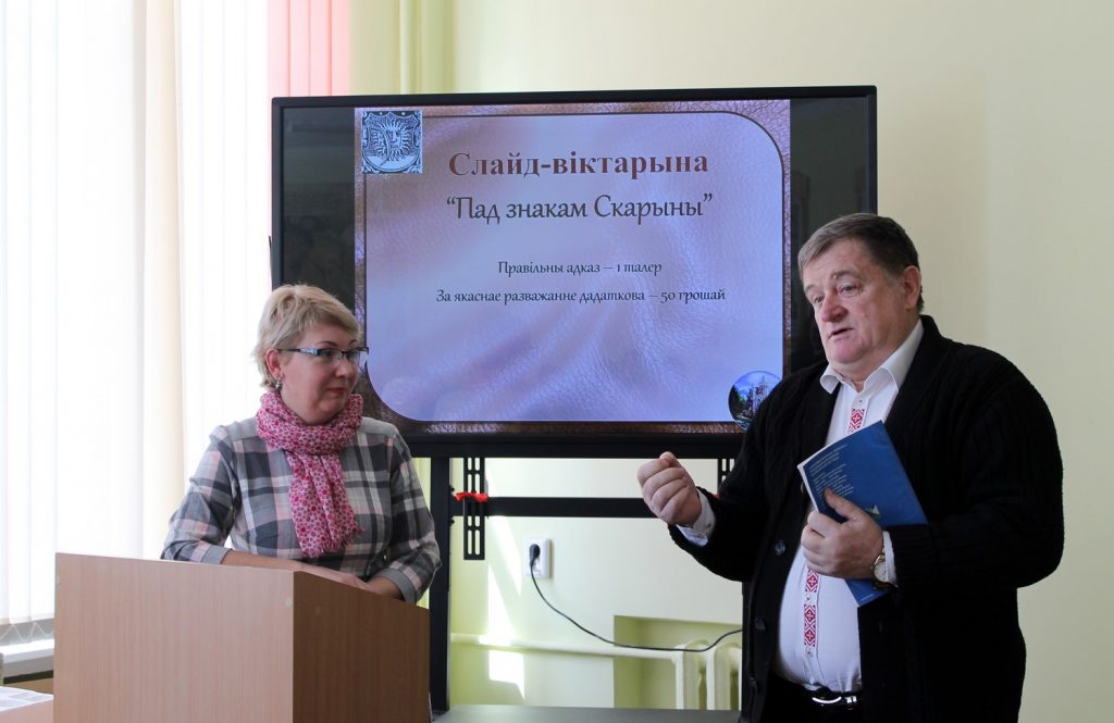 Для Инессы Плескачевской учащимися гимназии № 10 города Гомеля (её в свое время закончила Инесса) был презентован электронный проект «Под знаком Скорины», разработанный под руководством выпускника филологического факультета ГГУ. Школьники представили гостям встречи тематические вопросы на знание фактов из биографии Франциска Скорины. Многие вопросы вызвали у студентов трудности.