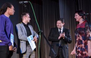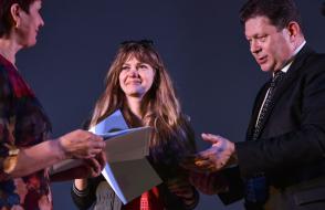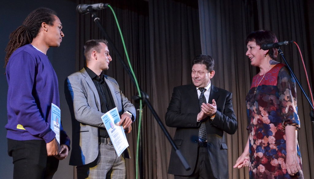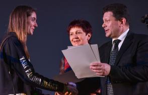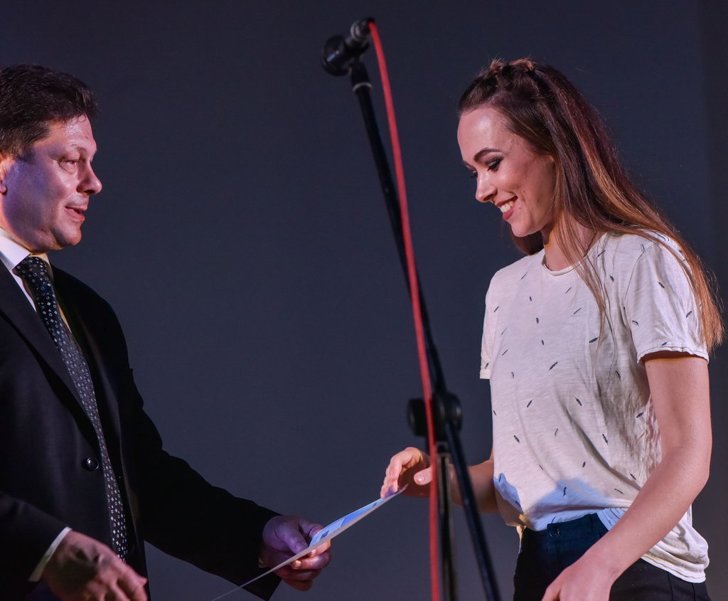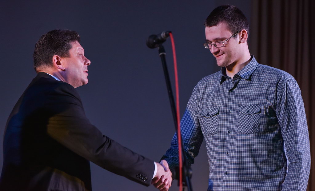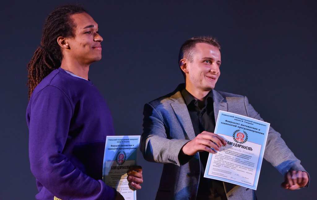 Основной же накал и буйство положительных эмоций не только студенты, но и все пришедшие получили на торжественной программе. В очередной раз слова напутствия декана Сергея Жогаля открыли церемонию награждения. Руководитель факультета также поздравил отличившихся студентов и выпускников, отметил их огромный вклад в жизнь факультета. Все ребята – одаренные и талантливые студенты, которые нашли себя в научной, творческой и общественной деятельности университета. Также со сцены прозвучали итоги интернет-акции «О войне написано не всё…», приуроченной к великому празднику – Дню Победы. Самыми активными стали студенты группы ПО-21. Они показали своим творчеством трепетное и почтительное уважение к военной истории, которая остается жить вечно.