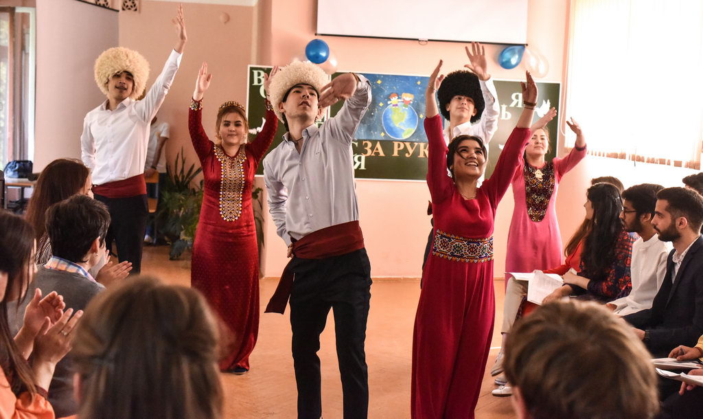 Вечер открыли ребята из Туркменистана. Презентацию о своей стране представил слушатель подготовительного отделения Мейлис Кульназаров. Песню «Мама» исполнила студентка факультета иностранных языков Гулнар Нурова. Национальный танец «Куштдепди» вдохновенно исполнили студенты филологического факультета. Прозвучала песня под гитару в исполнении слушателя подготовительного отделения Атаева Мейлиса.