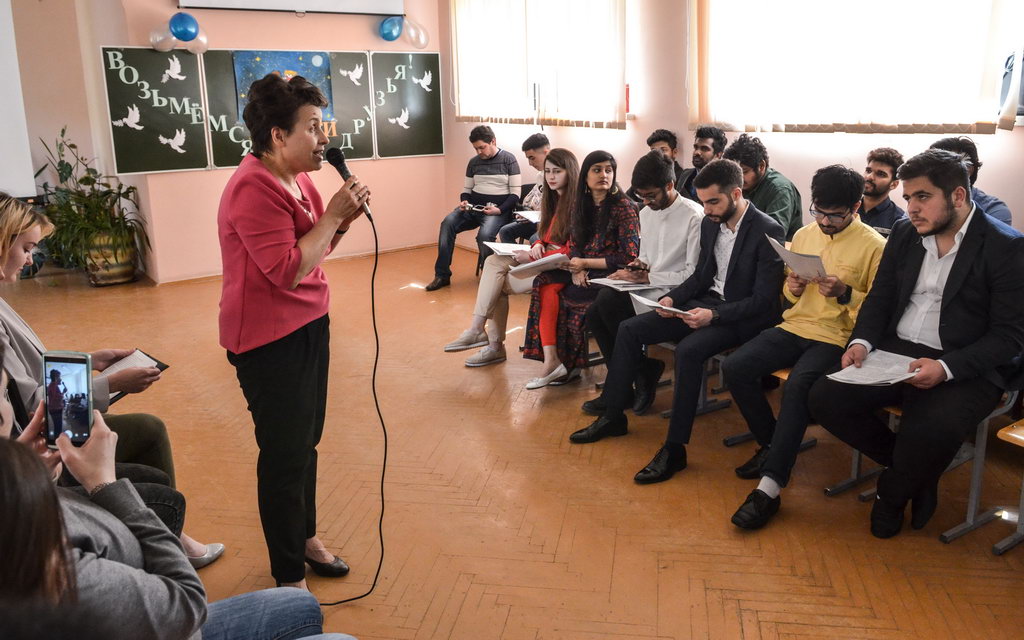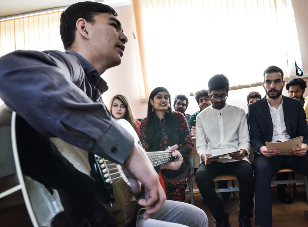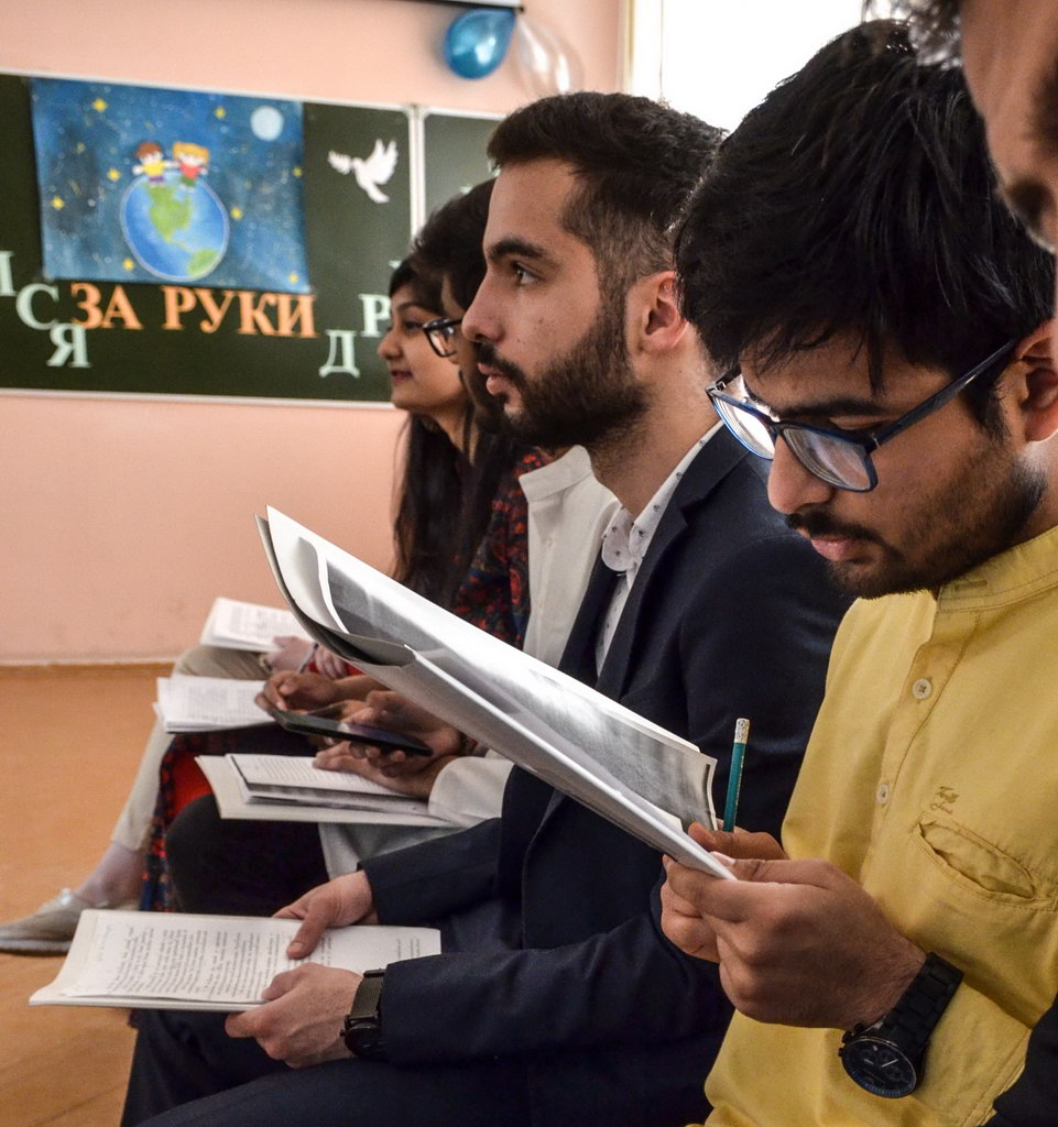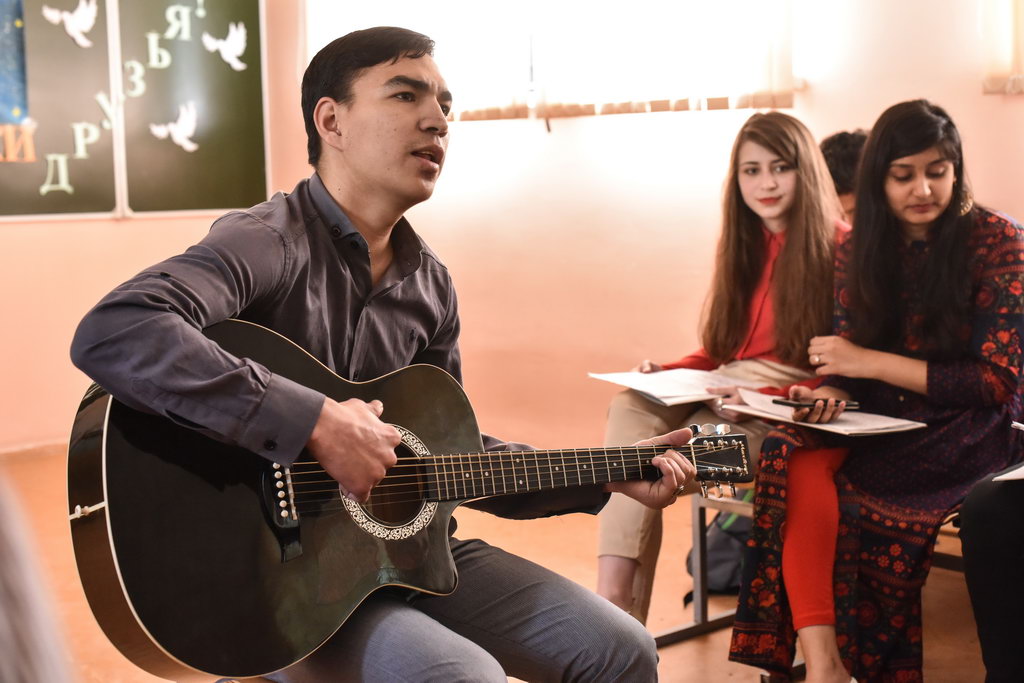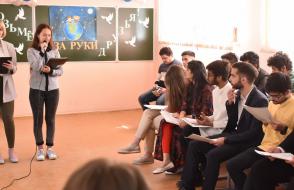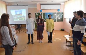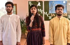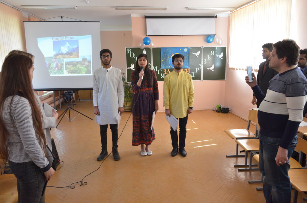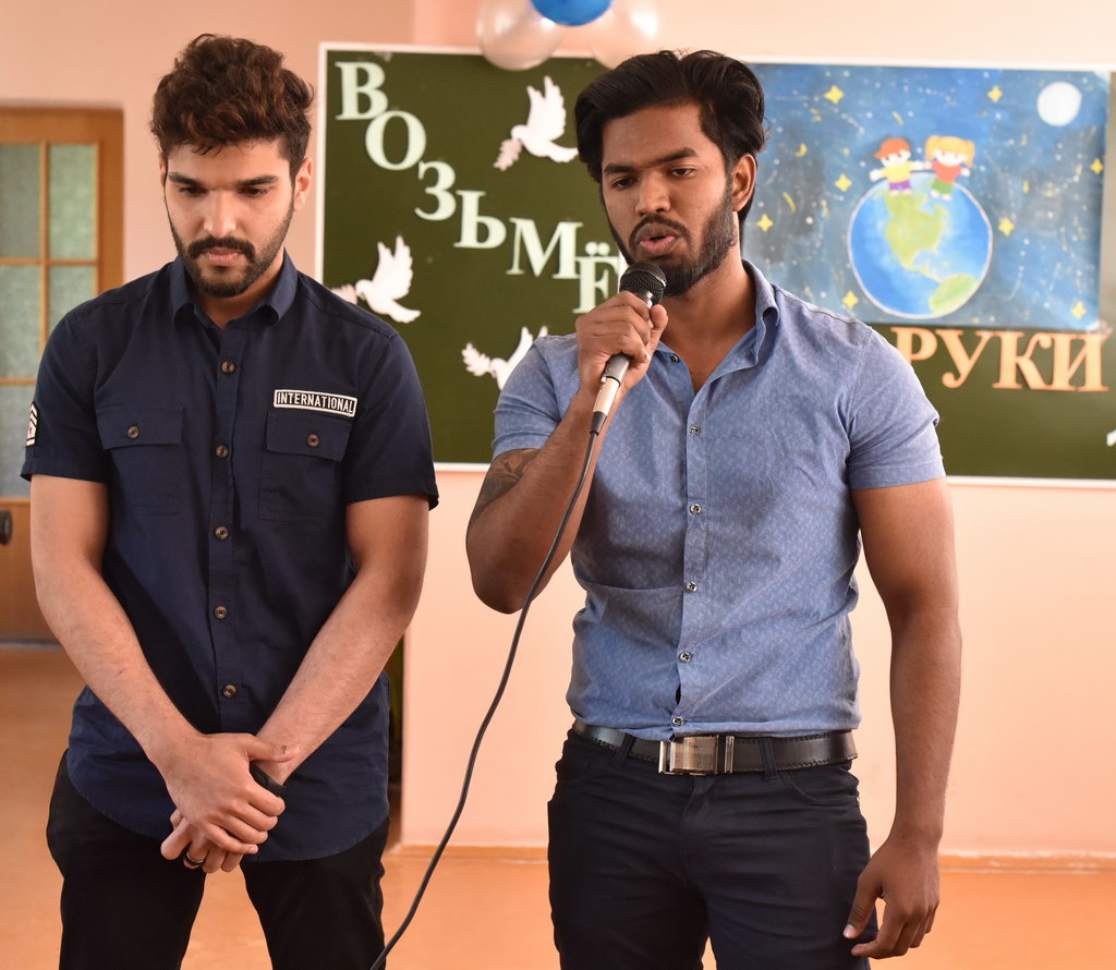 Эстафету подхватили ребята из Индии. Ятика и Пранджал Сомани, Агарвал Арпит и Сехал Ахинав представили презентацию о своей родине и исполнили литературно-музыкальную композицию «Нам нужен мир».