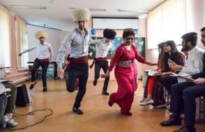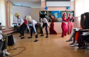 А затем обаятельные ведущие Дроздова Валентина и Якубовская Виктория предложили превратить импровизированный зал в кулинарную гостиную. Девушки из Туркменистана приготовили для дегустации плов по рецепту своих родителей, а наши девчонки угощали традиционными национальными драниками, блинами и пирогами!