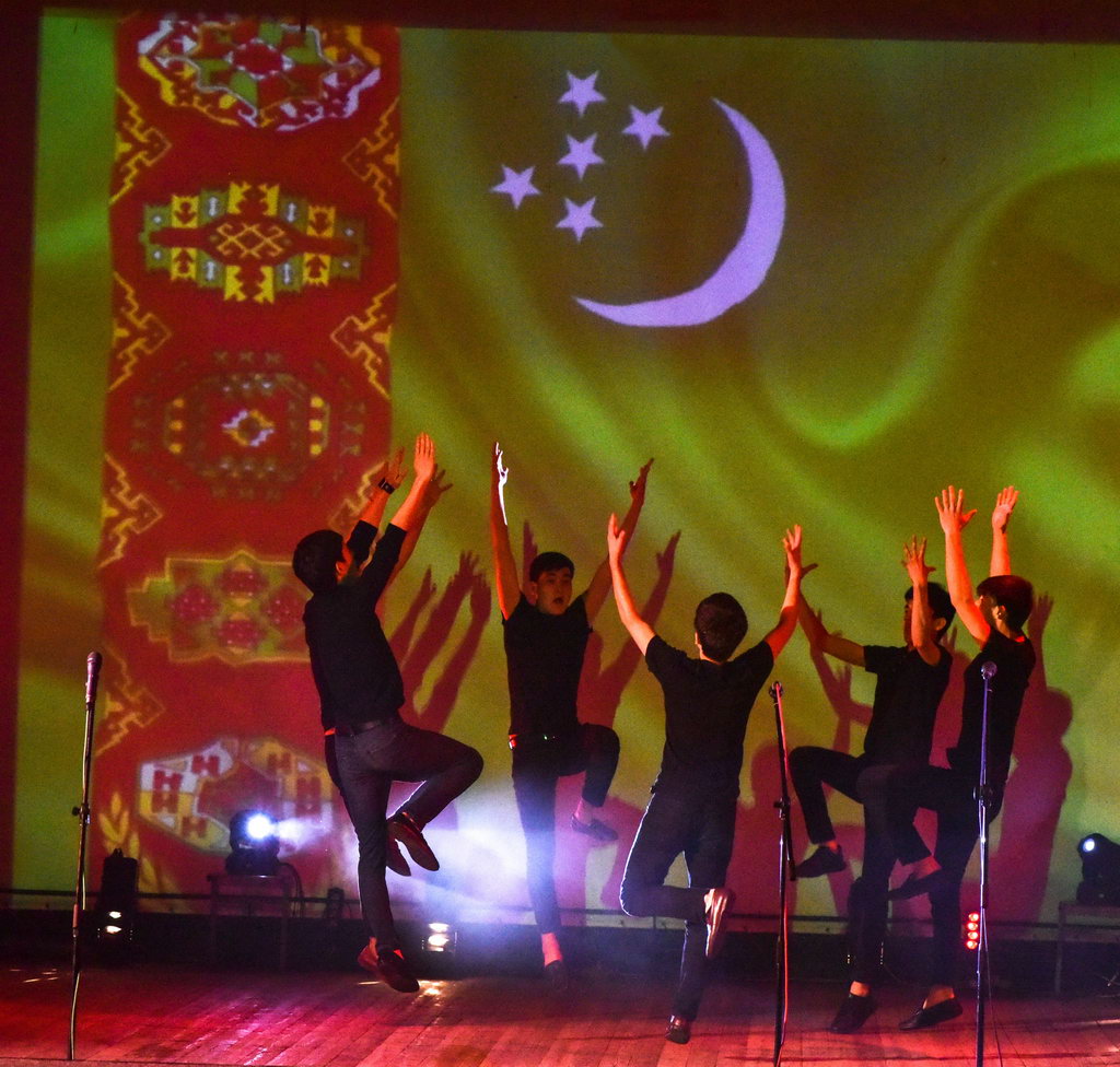 Открывал концертную программу танцевальный коллектив «Ашхабат» из Туркменистана. Своим танцем они задали хороший темп и тон всего концерта. Продуманные костюмы и четкость движений парней, а после бурные аплодисменты всего зрительного зала – отличное начало итогового концерта!