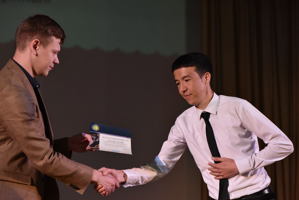 С приветствием к зрителям обратился декан факультета довузовской подготовки Дмитрий Ходанович. Он высказал слова благодарности организаторам мероприятий, студентам, которые приняли активное участие в жизни университета, отметил спортивные достижения футбольной и волейбольной команд университета.