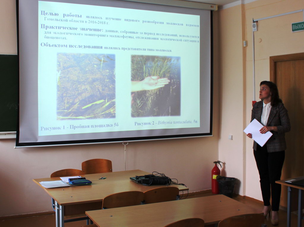 1. Анастасия Барабаш, студентка 4 курса биологического факультета. Тема доклада: «Mалакофауна разнотипных водоемов Буда-Кошелевского района Гомельской области» (научный руководитель: старший преподаватель кафедры зоологии, физиологии и генетики Татьяна Владимировна Азявчикова);