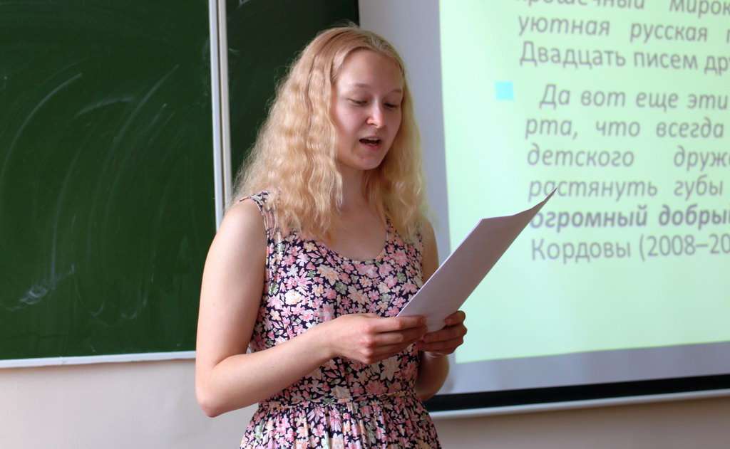 1. Полина Завтрикова, студентка 3 курса филологического факультета. Тема доклада: «Пространственно-временные характеристики "моего мира" (на материале Национального корпуса русского языка)» (научный руководитель: д.ф.н., доцент, зав. кафедрой русского, общего и славянского языкознания Елена Владимировна Ничипорчик);