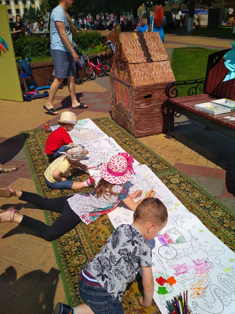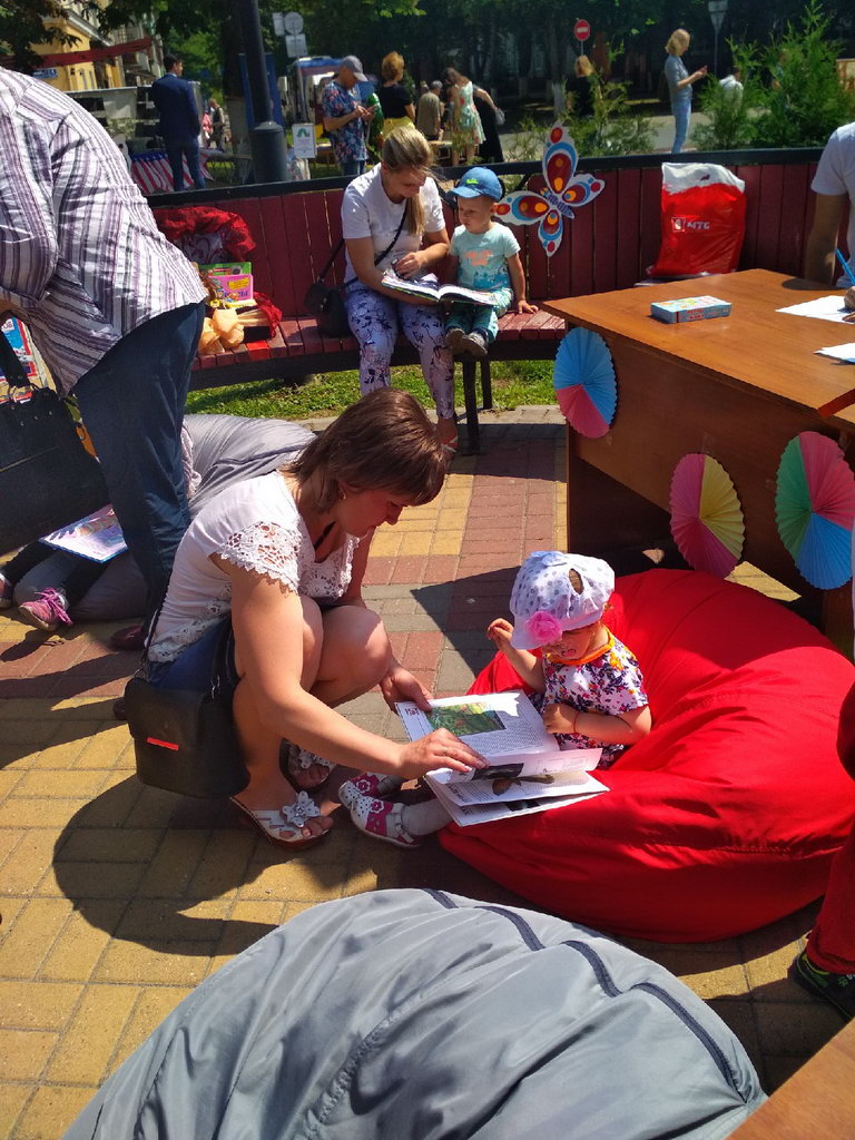 Жители города с интересом рассматривали выставленные на стендах книги, слушали стихи, песни гомельских авторов; для детей была организована замечательная площадка, где они могли рисовать, раскрашивать картинки, лёжа на расстеленных прямо на тротуаре коврах, читать книжки, играть в предлагаемые игры.