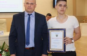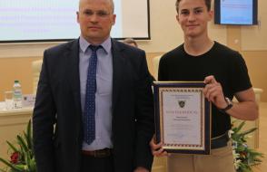 31 мая в управлении Следственного комитета Республики Беларусь состоялась церемония награждения. Заместитель начальника управления, подполковник юстиции Алексей Исаченко вручил грамоту за значительный вклад в развитие и совершенствование деятельности Следственного комитета Республики Беларусь Анна Набатовой, первокурсникам Даниилу Хвесюку и Виктору Моисеенко – благодарности.