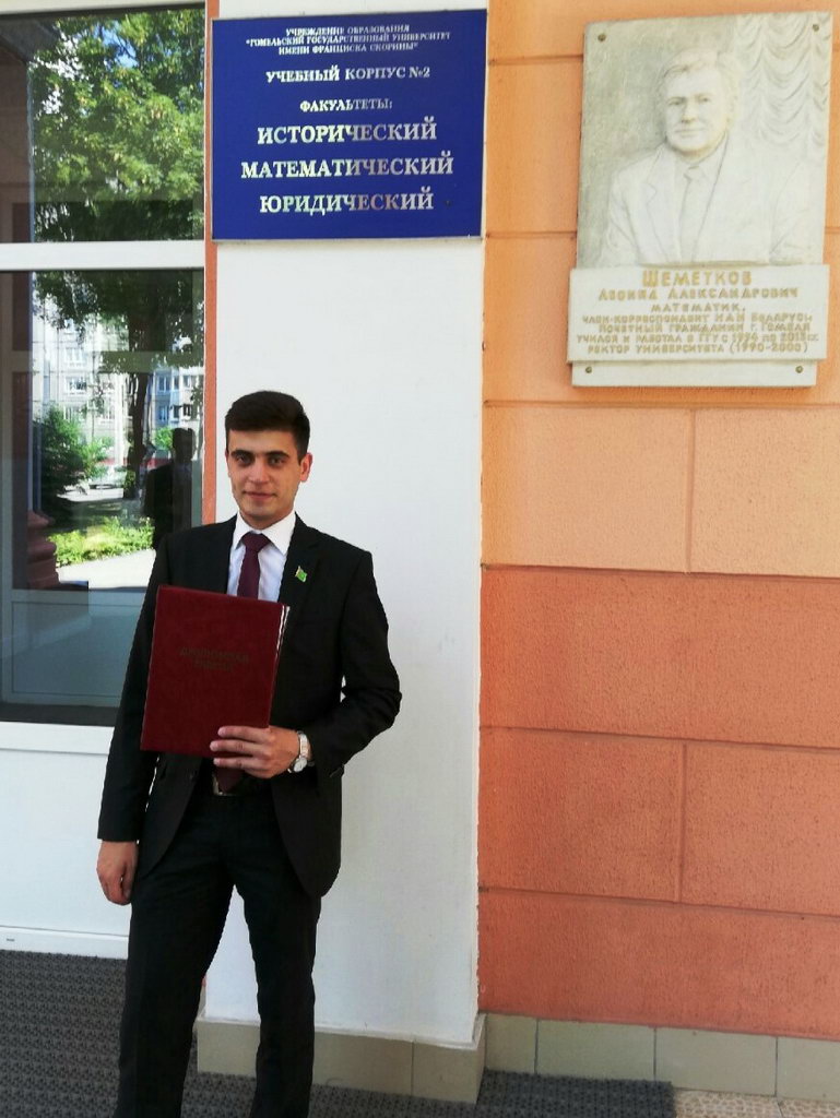 – После поступления в Гомельский университет имени Ф. Скорины изучал дисциплины как и все мои друзья. Над темой диплома думал долго, но вскоре стало интересно, чем же отличается судебная власть вашей страны и нашей. Вот и пошла работа, пусть было и тяжело, но мой труд был высоко оценен, чем горжусь не только я, но и все мои родные.