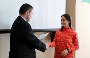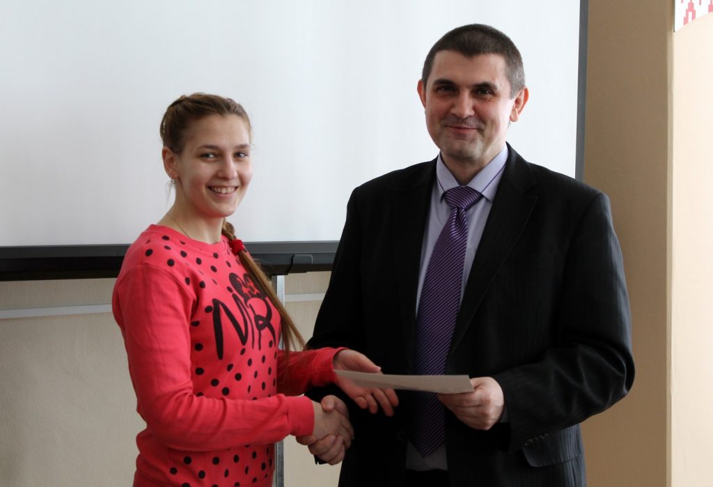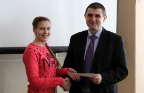 Из рук проректора по воспитательной работе Юрий Валерьевича Никитюка представители четырех студсоветов факультетов (биологического, филологического, исторического, факультета физической культуры) получили дипломы за лучшую организацию интерактивных площадок на Дне открытых дверей, который прошел в университете 17 марта.