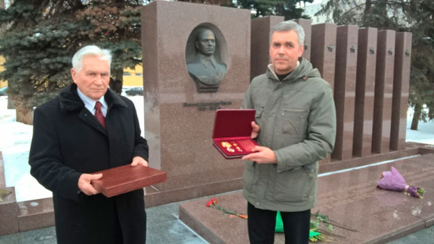 Сразу после церемонии передачи ордена Жукова Афанасьевы с наградой отправились на могилу А.И. Лизюкова на Мемориале Славы.