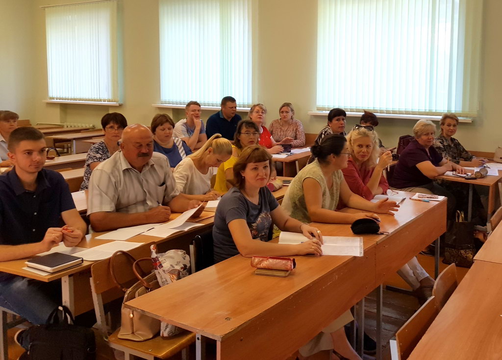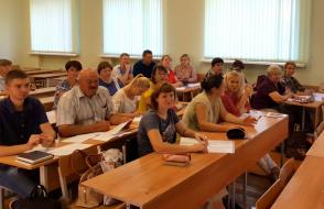 Летняя школа для учителей математики учреждений общего среднего образования г. Гомеля и Гомельской области прошла 26-29 августа. Ее задачами было совершенствование знаний по теории и методике обучения решения комбинаторных задач, задач по теории вероятностей и математической статистике, а также решения геометрических задач. Участниками зимней школы были учителя школ г. Гомеля, Гомельского, Буда-Кошелевского, Брагинского, Ветковского, Добрушского, Ельского, Житковичского, Жлобинского, Калинковичского, Кормянского, Лельчицкого, Мозырского, Наровлянского, Октябрьского, Петриковского, Речицкого, Рогачевского, Светлогорского, Хойникского, Чечерского районов. Многие из них присутствующих учителей были выпускниками математического факультета ГГУ, что создавало приятную рабочую обстановку в стенах Alma mater, вдохновляло к творческой деятельности. Преподаватели нашего вуза также рассказали о специальностях факультета математики и технологий программирования, особенностях обучения студентов, трудоустройства выпускников. Каждый учитель имел возможность увезти в свою школу рекламный буклет факультета с целью привлечения будущих абитуриентов.