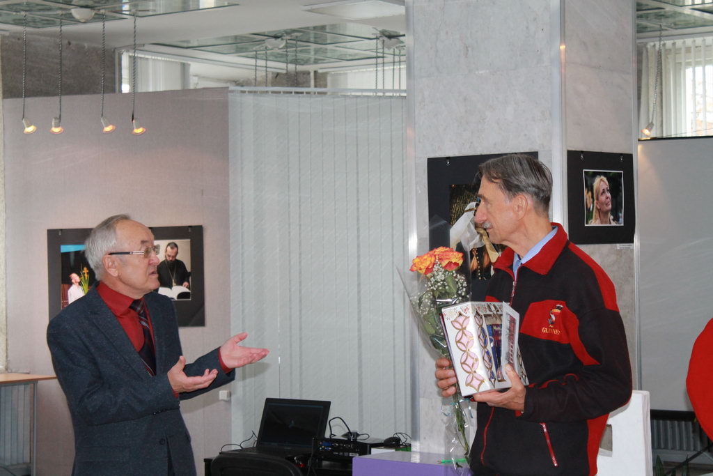 На встречу с творческой личностью и просто хорошим человеком пятничным днем пришли сотрудники нашего вуза. Поводом собраться в выставочном зале послужило желание сказать «спасибо» Владимиру Павловичу – искренне и от души: за профессиональную работу, полную самоотдачу, внутреннюю интеллигентность и редкое добродушие.