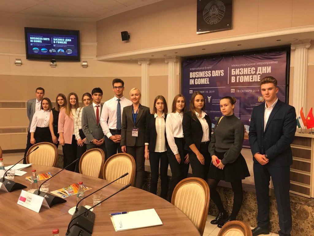 По приглашению Гомельского отделения Белорусской торгово-промышленной палаты студенты факультета иностранных языков и экономического факультета под руководством заведующего кафедрой английского языка Татьяны Починок 18 октября приняли участие в Международном деловом мероприятии «Бизнес-Дни в Гомеле».