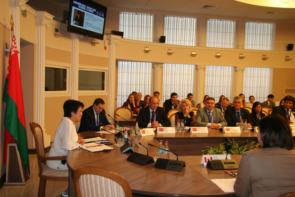 5 студентов 3 курса факультета иностранных языков принимали участие в регистрации иностранных участников мероприятия из Польши, Индии, Китая, Вьетнама, Италии, Германии, Австрии, Канады, США и др. стран. Студенты 1 курса специальности «Бизнес-администрирование» и 2 курса специальности «Экономика и управление на предприятии» участвовали в секциях мероприятия. Свой первый экономический опыт получили студенты-экономисты, участвуя в секции «Роль межпалатного сотрудничества, взаимодействие бизнес-союзов и ассоциаций в интересах развития регионов», модератором которой выступила Марина Владимировна Филонова – генеральный директор Гомельского отделения БелТПП. Выступление Прияншу Джа – председателя Союза организаций по содействию торговле и промышленности (Индия) на английском языке явилось реальной возможностью для студентов использования делового английского языка.