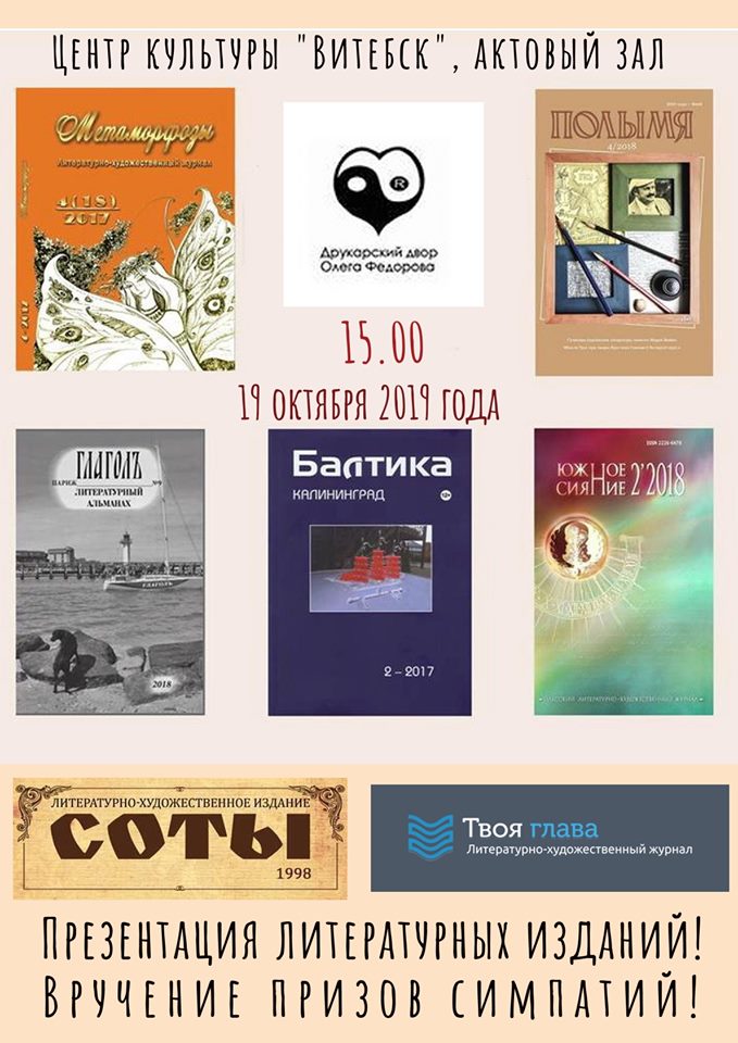 В Витебске прошел ХХХIII открытый международный фестиваль авторской песни, поэзии и визуальных искусств «Витебский листопад - 2019», собравший в городе на Двине свыше ста участников – поэтов, музыкантов, перформеров и художников из девяти стран: Беларуси, России, Украины, США, Новой Зеландии, Израиля, Латвии, Татарстана, Казахстана.