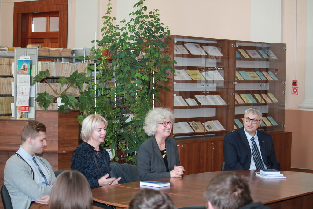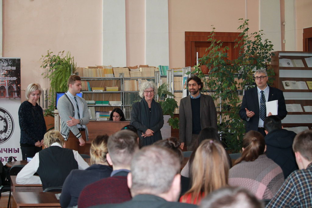 На последующей встрече с коллективом и студентами исторического факультета немецкие гости представили возможности академической мобильности, ответили на многочисленные вопросы студентов-историков. Любопытно, что живой диалог проходил на нескольких языках – белорусском и русском, а также на английском и немецком.