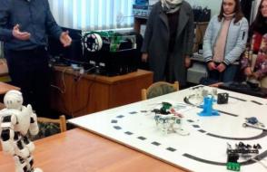 Однако и другие направления сферы IT технологий, развиваемые на факультете, не были обойдены вниманием будущих абитуриентов. С интересом ими была воспринята экскурсия в лабораторию DLink и ознакомление с учебным планом специальности «Программируемые мобильные системы». Конечно, особое внимание не могла не привлечь лаборатория робототехники. Танцующий робот под управлением заведующего кафедрой общей физики Шершнева Е.Б. планировался, как гвоздь программы. Однако наибольший интерес был прикован к 3-d принтеру, собранному руками студентов и сотрудников, и школьники засыпали вопросами ст. преподавателя кафедры Побияху А. С.