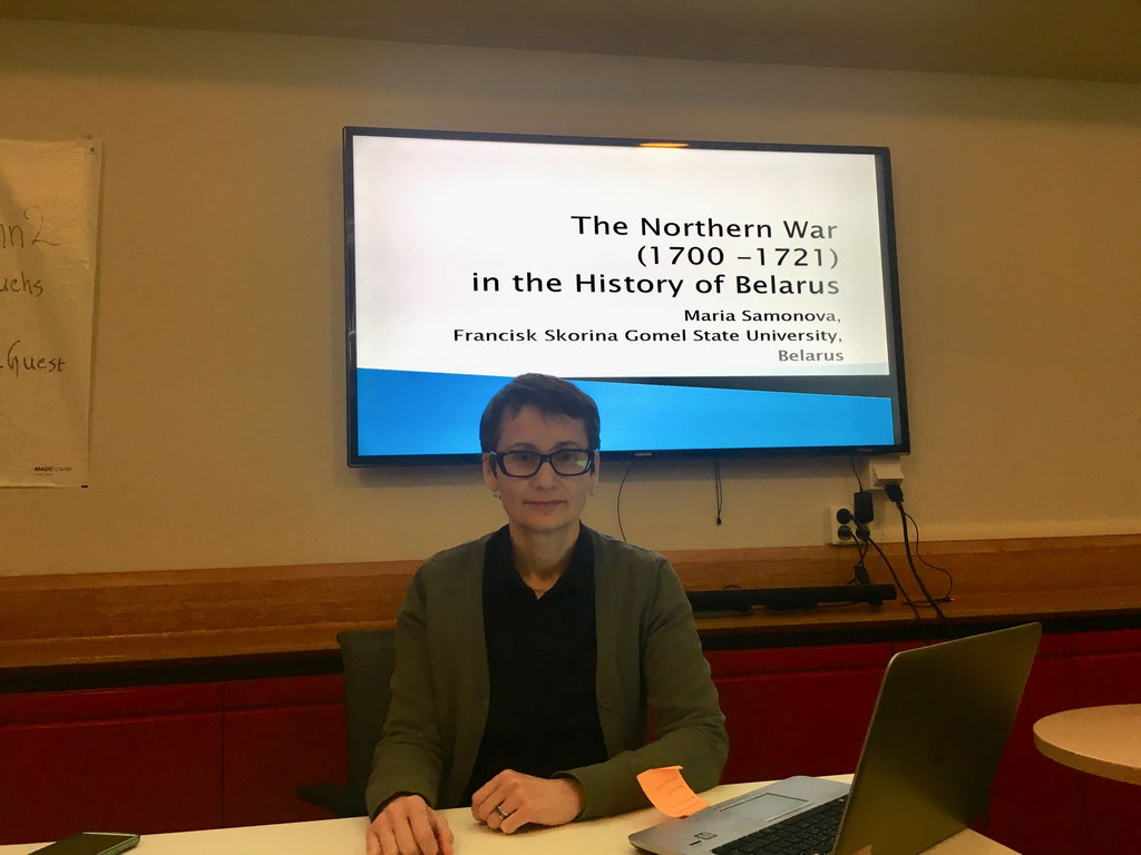 На семинар были приглашены докладчики из Музея армии (Стокгольм), Стокгольмского университета, Сёдертёрнского университета (Стокгольм), Уппсальского университета. Гомельский государственный университет имени Ф. Скорины представляла Мария Самонова. Она выступила с докладом на английском языке «Северная война (1700 – 1721 гг.) в истории Беларуси». В докладе были выделены и проанализированы основные подходы в современной белорусской историографии к данной проблеме.