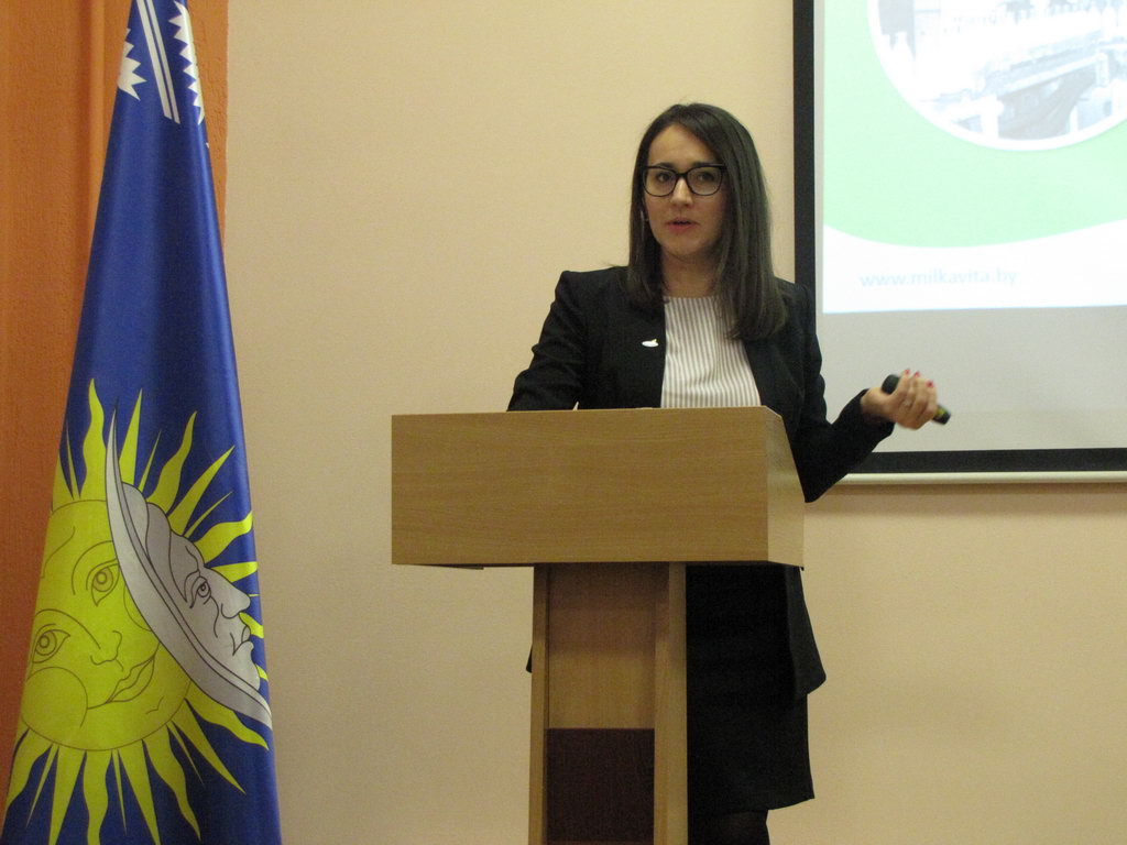Сообщение «Милкавита: тенденции и перспективы развития рынка молока» представила заместитель генерального директора по идеологической работе предприятия Елена Лапова, а начальник отдела интернет-маркетинга ОАО «Гомельмаш» Екатерина Ахременко обозначила основные аспекты международного сотрудничества холдинга и продемонстрировала видео о предприятии на английском языке.