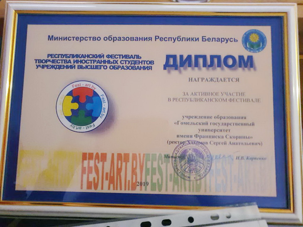 Кроме вышеперечисленных достижений, каждому представителю ГГУ имени Ф. Скорины были вручены дипломы за участие в фестивале.