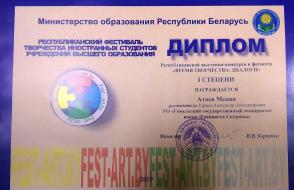 Фестиваль включал в себя множество различных направлений творчества. Достойно представил наш вуз студент факультета физической культуры Мекан Атаев (руководитель Александр Курако), который был удостоен диплома I степени Республиканской выставки-конкурса «ВРЕМЯ ТВОРЧЕСТВА: ДИАЛОГИ» (его работа представлена на фото справа).